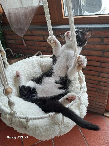Votre chat mérite un endroit spécial pour se détendre. Ce hamac suspendu offre un espace cosy et sécurisé, parfait pour de longues siestes et des moments de calme.